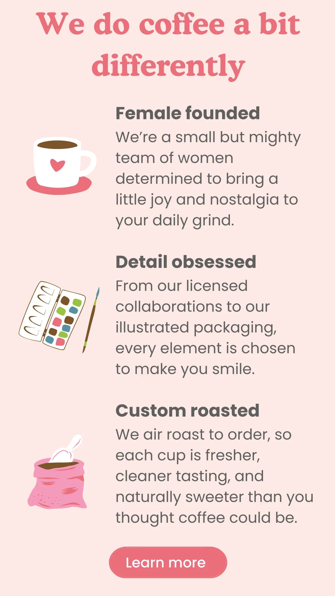 Remember that blissful feeling of being a kid in a candy store? Our Candy Store collection brings that same wide-eyed wonder to your mornings with a lineup of fun, flavored coffees inspired by nostalgic confectionary favorites. These sweet, small-batch roasts are full of personality and perfect for anyone who loves playful coffee flavors with a touch of retro joy.