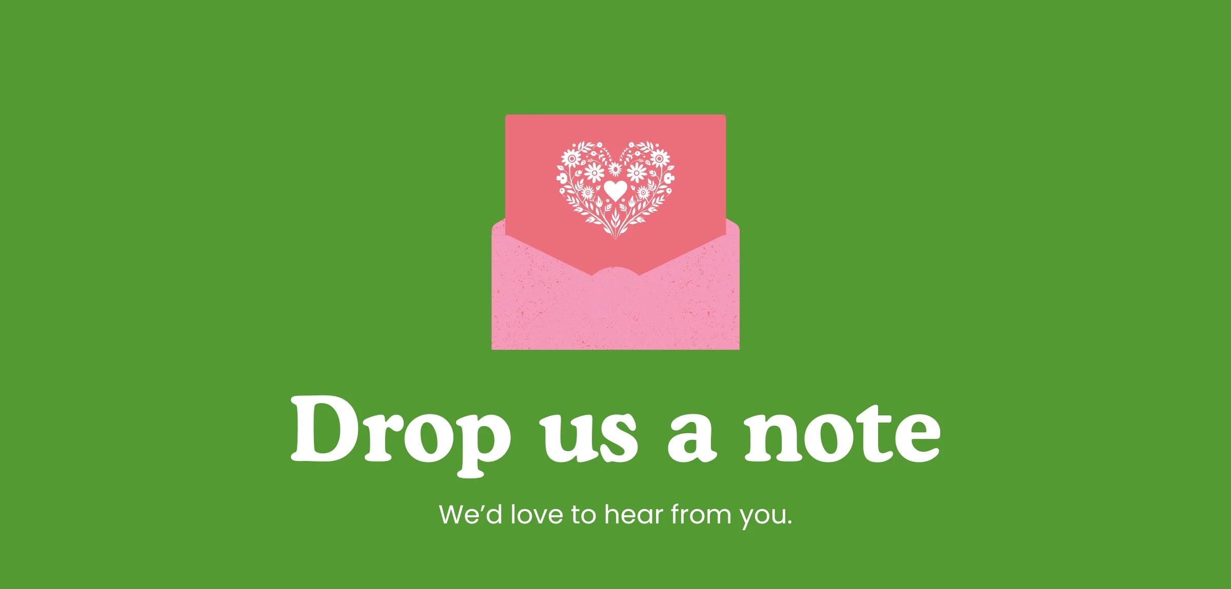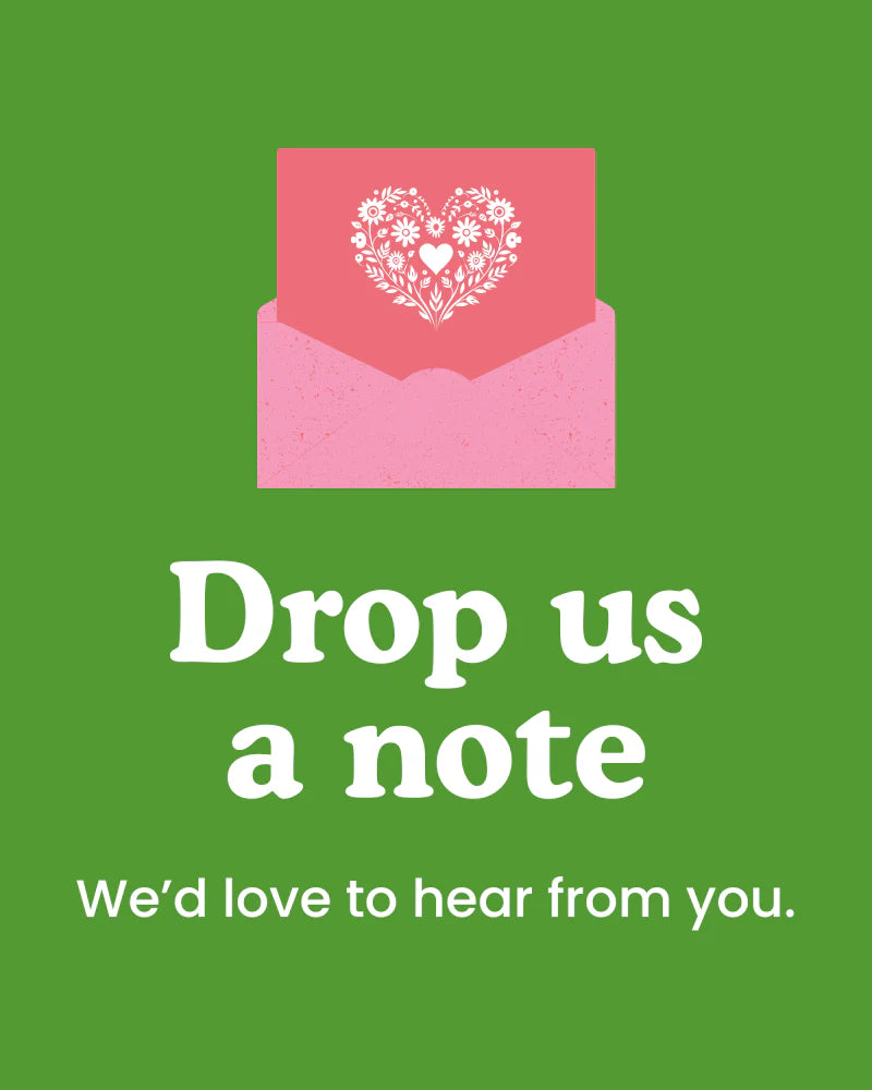 Have a question? A thought? A really great idea? Consider this your virtual suggestion box. Enter your name and email below and we'll be in touch soon... once we've had our morning coffee of course.